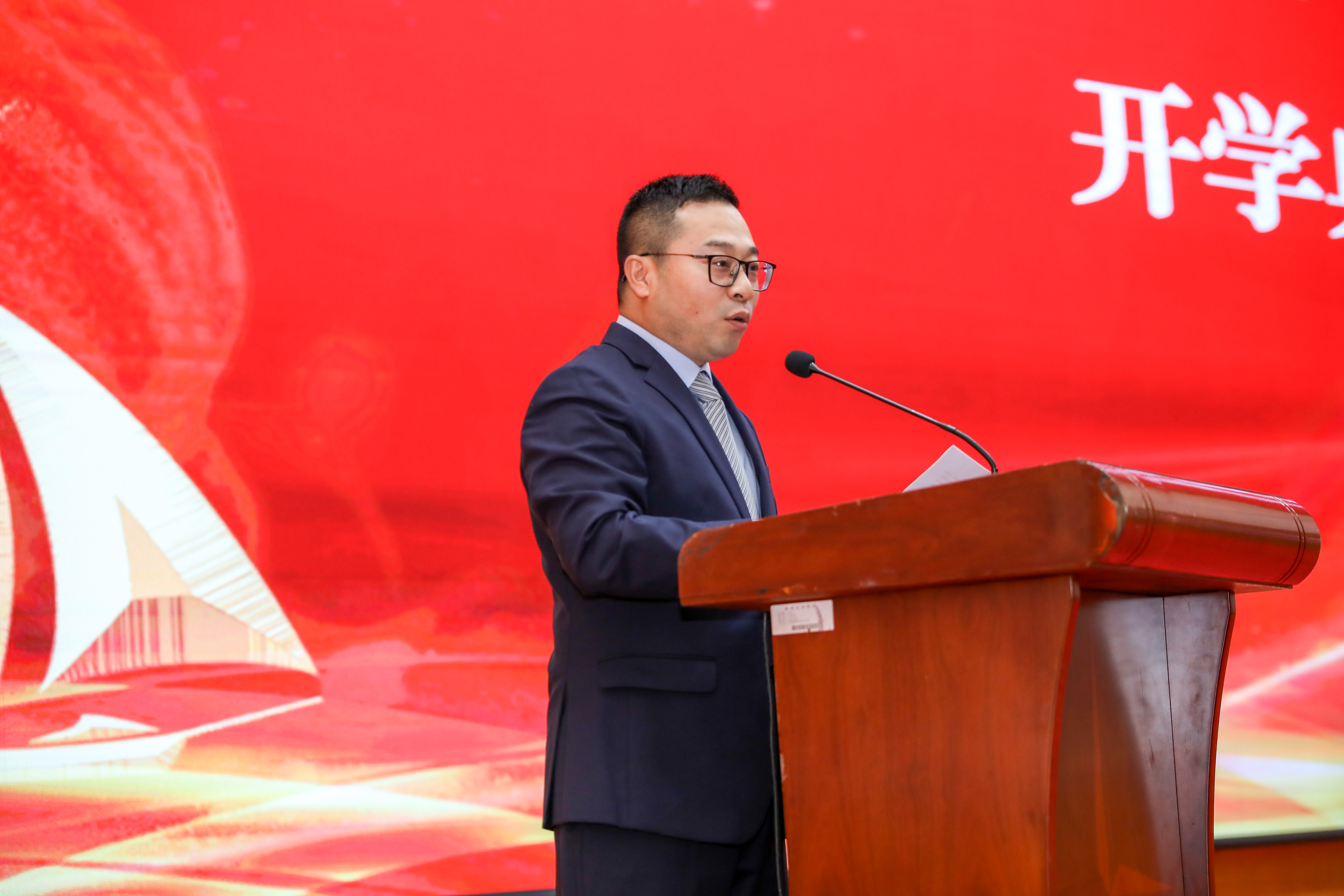 2021级5班班主任李云峰教授作为教师代表发言,他勉励同学们做人要心中有爱、心怀感恩,做学问要百折不挠、无畏挫折,立志向要仰望星空、脚踏实地。