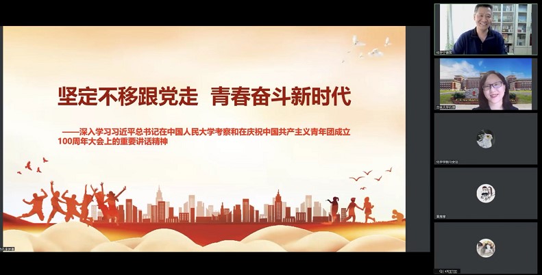 宁德宽围绕“我们为什么要入党,入党的目的是什么?”与同学们分享了个人的理解和体会。他从党史学习教育讲起,论述了中国共产党是一个伟大光荣正确的党。加入党组织应该成为每位青年人最高的政治追求,党组织要不断发展壮大,要不断吸收新鲜的血液和力量,而这新生的力量就来自于我们每一位要求进步的热血青年。他与同学们分享了习近平总书记在视察中国人民大学和建团100周年大会上对青年的寄语,希望广大青年牢记总书记的嘱托,坚定不移听党话、跟党走,努力成长为堪当民族复兴重任的时代新人;广大共青团员要认真接受政治训练、加强政治锻造、追求政治进步,积极向党组织靠拢,以成长为一名合格的共产党员为目标、为光荣。