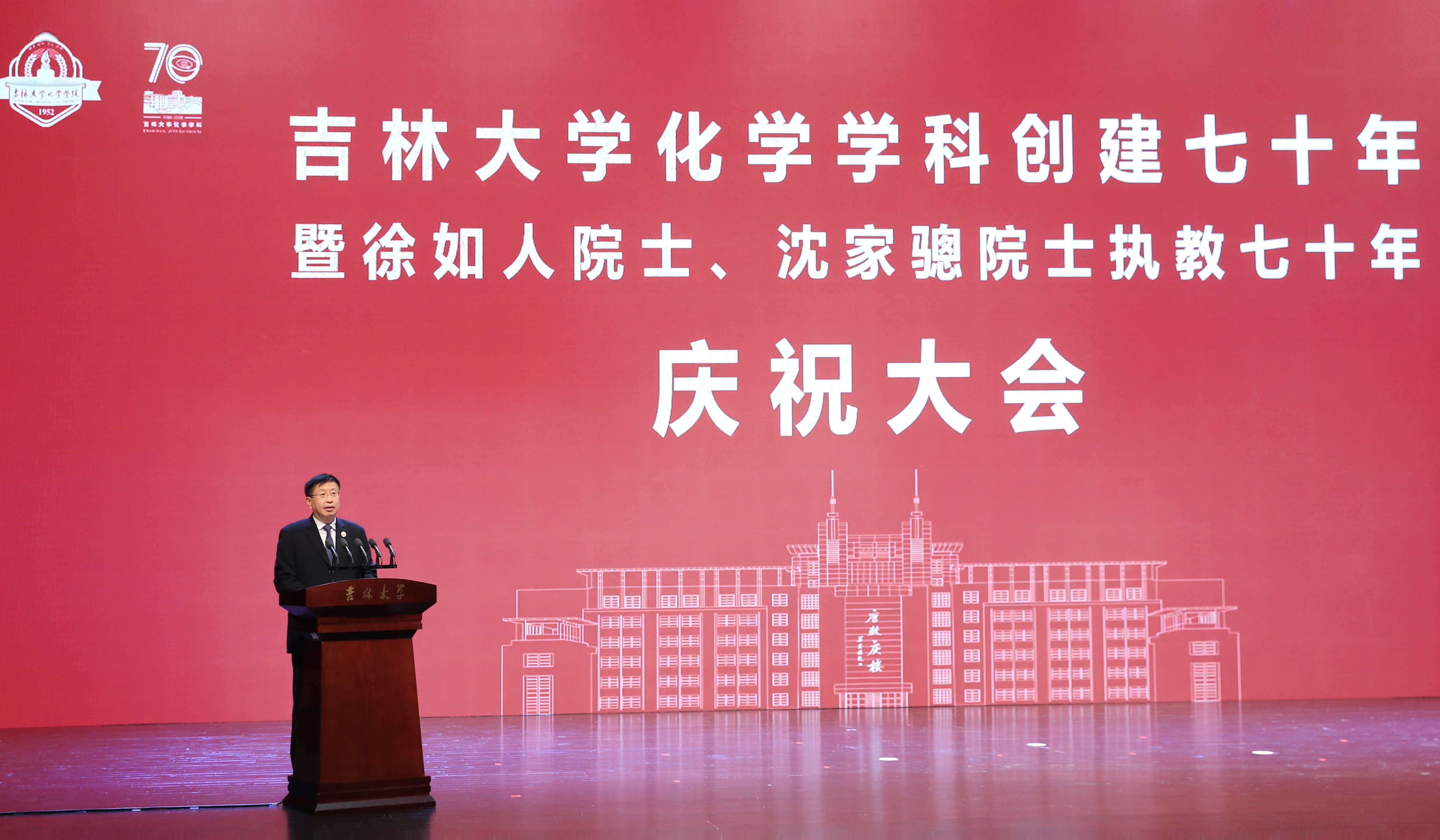 与吉大化学学科为推动基础研究和吉林振兴发展作出的突出贡献。他指出,70年来,吉大化学始终坚持党的领导,坚定社会主义办学方向,紧扣立德树人根本任务,牢记“为党育人、为国育才”的初心使命,一流学科建设令人振奋,人才培养质量稳步提升,科技创新成果不断体现,以徐如人院士、沈家骢院士为代表的一大批教育家无私奉献,辛勤付出,为吉林科教事业发展奠定了深厚而坚实的基础。希望吉大化学牢记习近平总书记教诲,聚力科研攻关,勇攀科技高峰,坚持“四个面向”,聚焦“六新产业”发展和“四新设施”建设,不断提升原始创新能力,助力吉林创新驱动高质量发展,培养更多适应时代要求和社会发展的高端人才。希望同学们传承吉大化学光荣传统,勤奋进取,努力拼搏,争做有理想、敢担当、能吃苦、肯奋斗的新时代好青年。他表示,吉林省政府将一如既往关心支持草榴社区