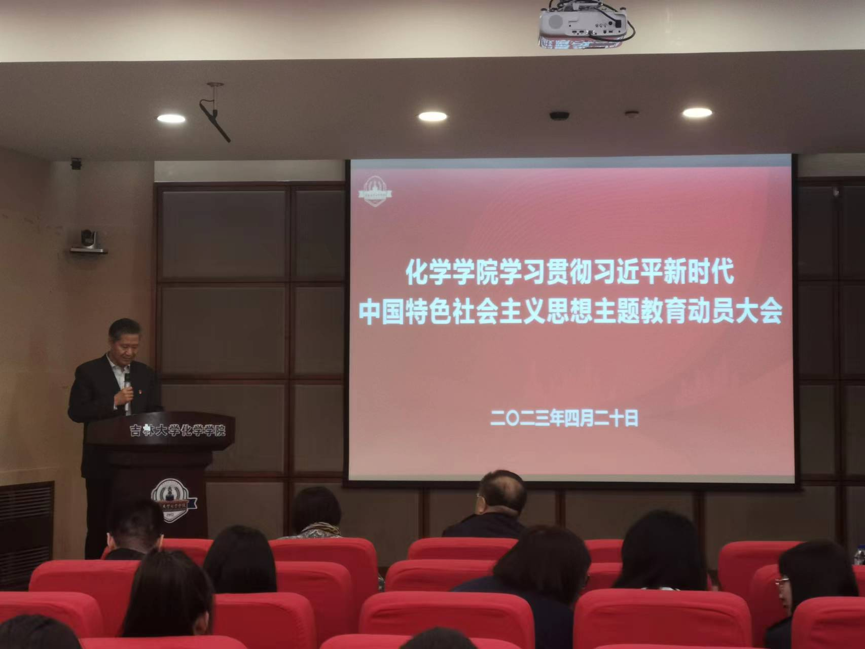 宁德宽指出,要深刻认识主题教育的重大意义,以党的二十大精神为指引,贯彻落实学校第十五次党代会精神,加快推进化学一流学科建设,要深刻把握主题教育“学思想、强党性、重实践、建新功”的总要求,坚持学思用贯通、知信行统一,把习近平新时代中国特色社会主义思想转化为坚定理想、锤炼党性和指导实践、推动工作的强大力量。要真抓实干,努力在以学铸魂、以学增智、以学正风、以学促干方面取得实实在在的成效,达到凝心铸魂筑牢根本、锤炼品格强化忠诚、实干担当促进发展、践行宗旨为民造福、廉洁奉公树立新风的目标。要突出问题导向,解决学院发展中的难点难题。学院领导干部要加强集中学习研讨,讲好专题党课,下沉教学科研一线调研,列出问题清单,制定整改措施,解决群众期盼。要全面检视整改,巩固主题教育成果,开好专题民主生活会,注重成果运用,把主题教育总结出的方法,调查研究查找出的问题,广大师生员工的关切作为今后工作的出发点和落脚点,长期坚持,推动学院各项工作健康有序发展。