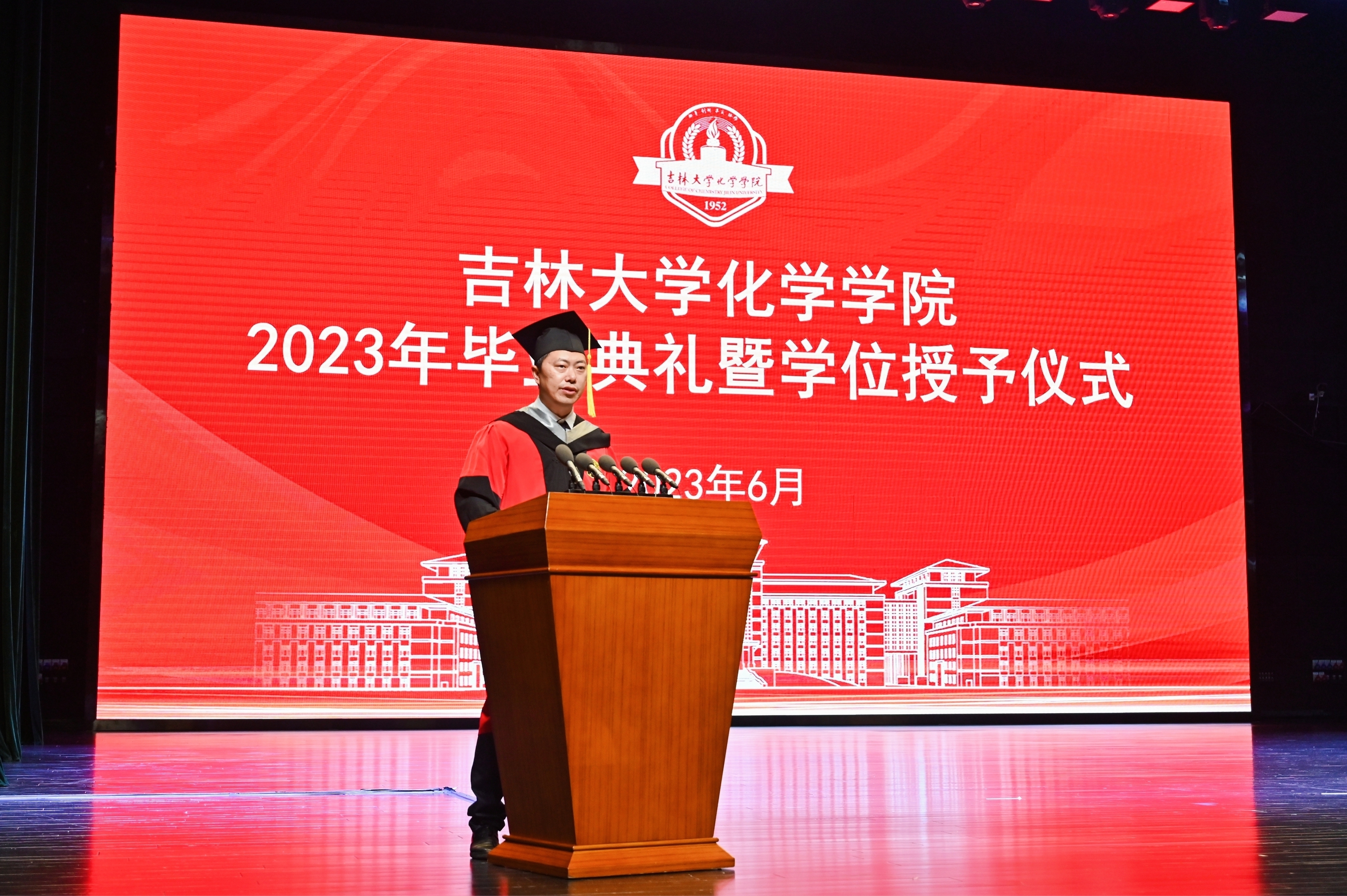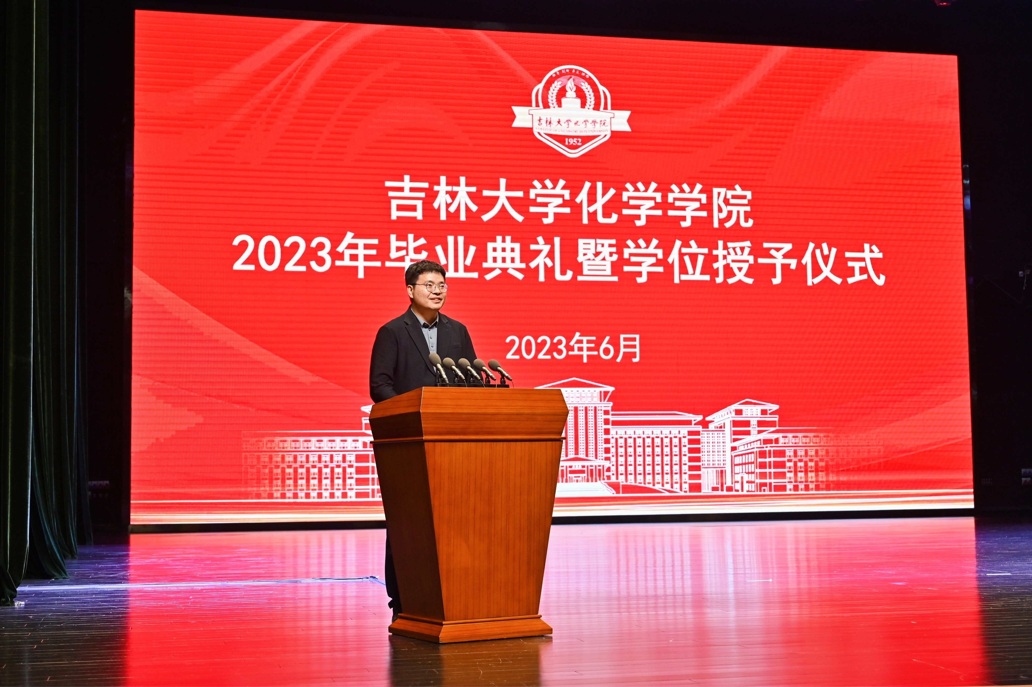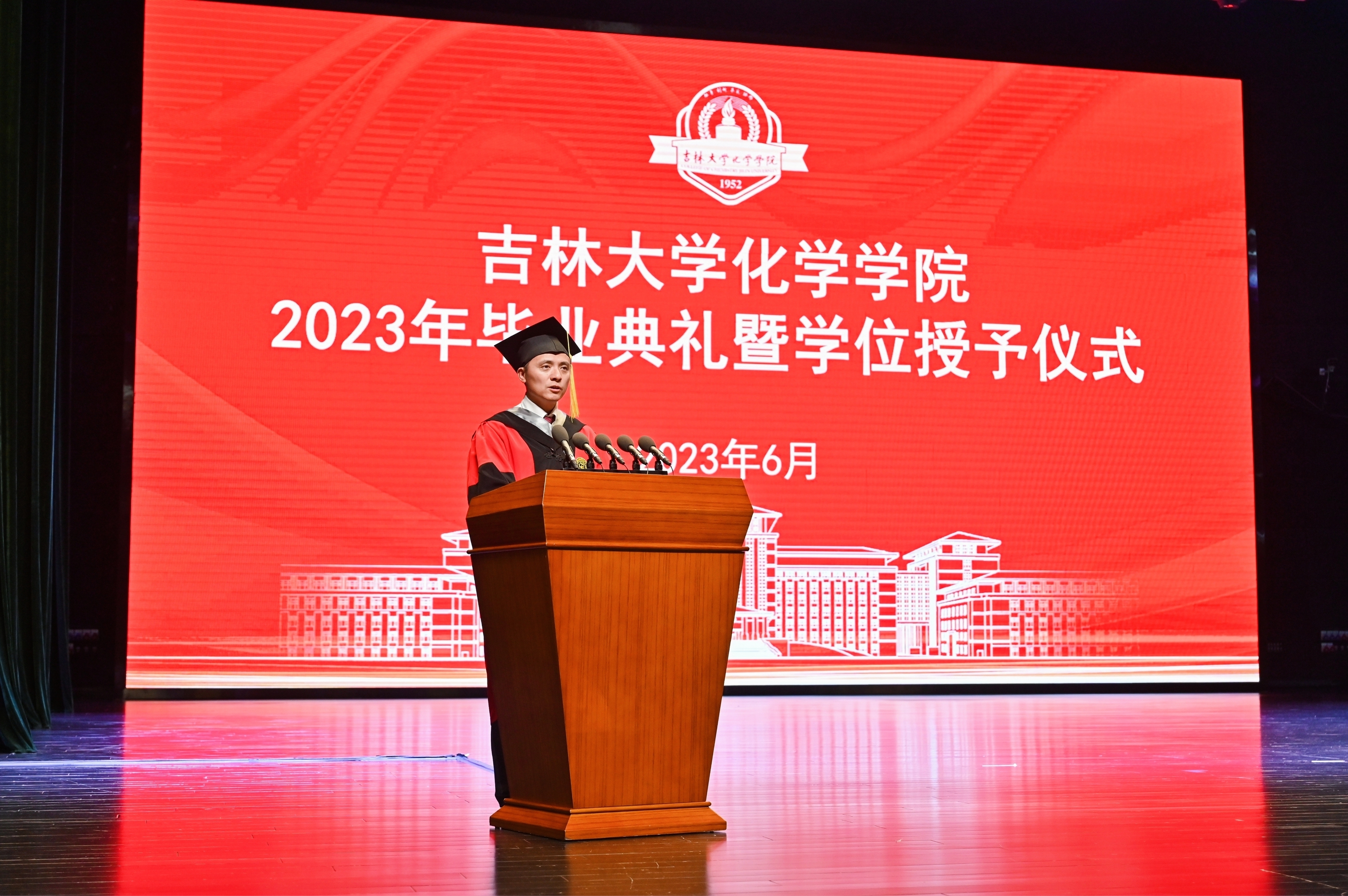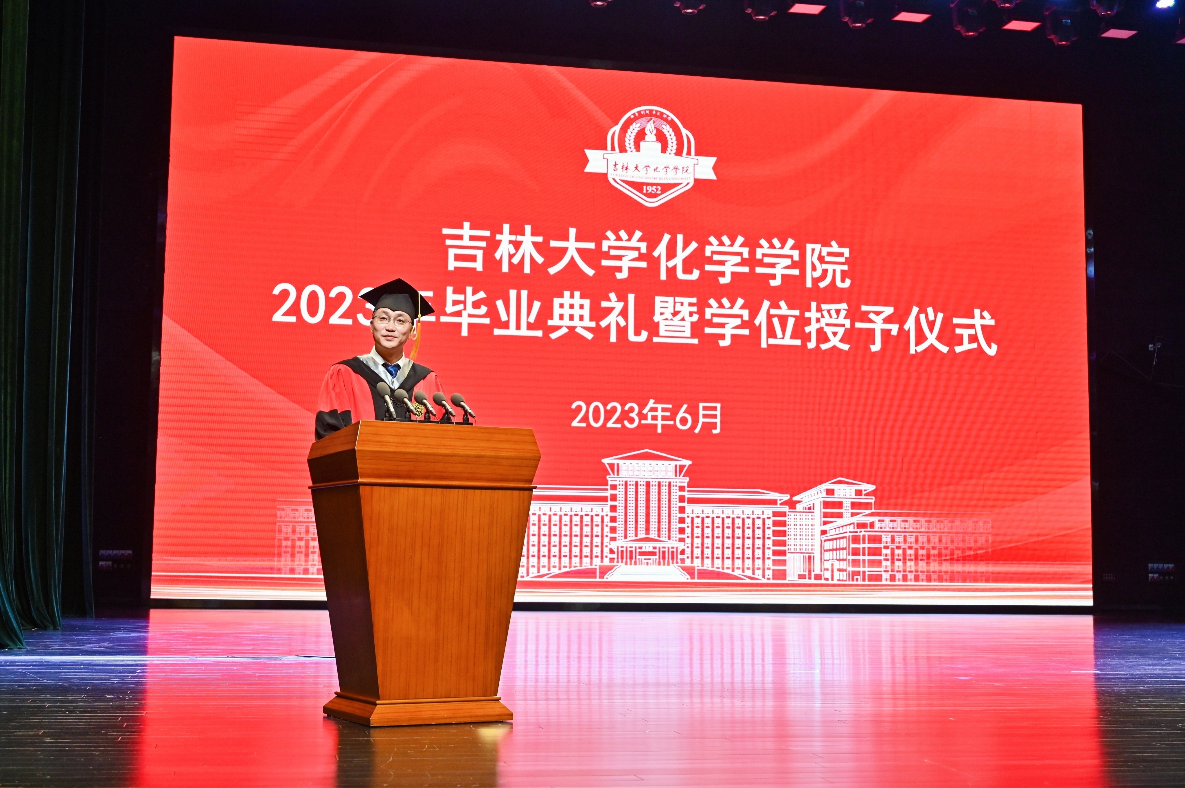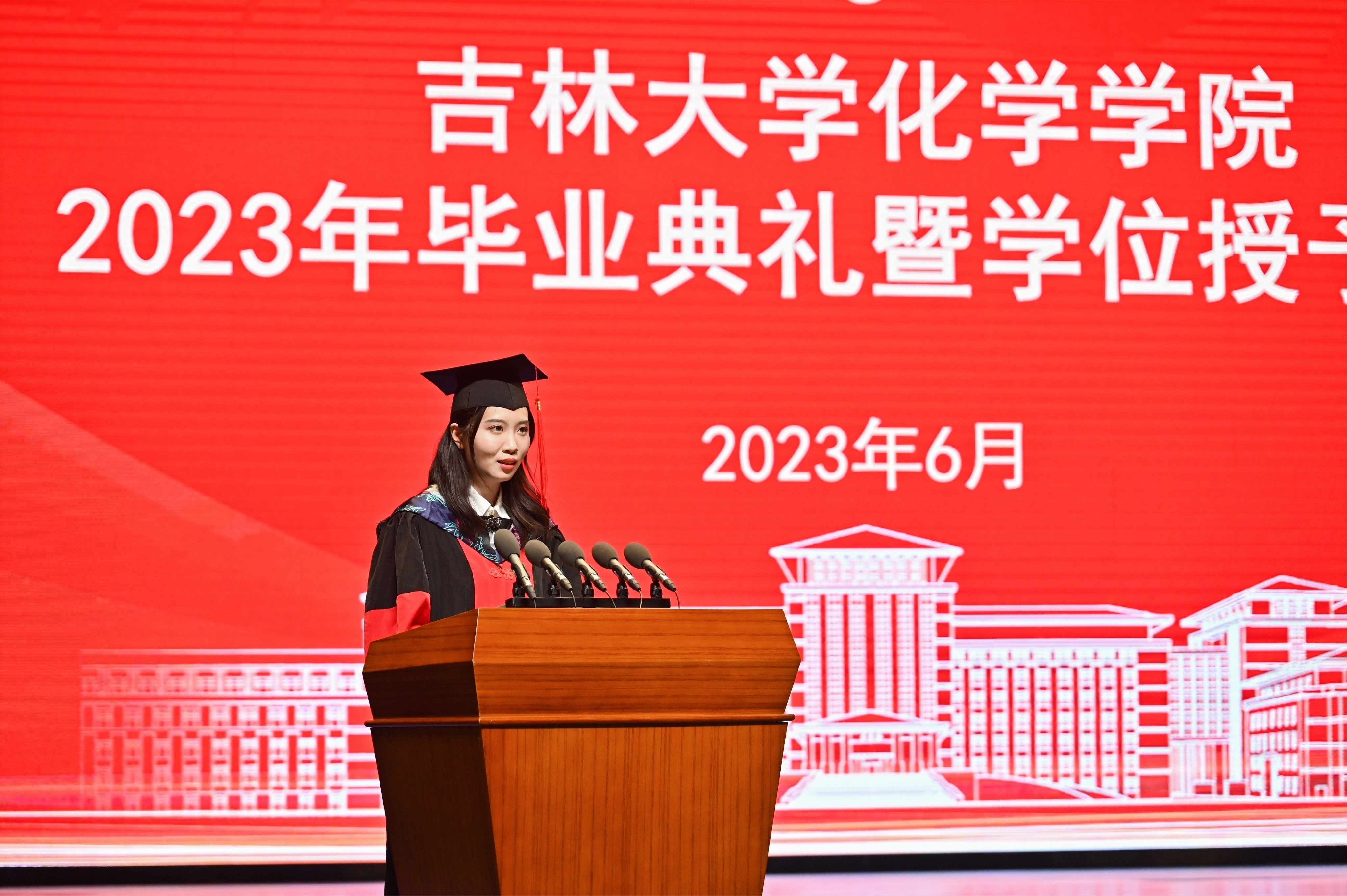 2023届优秀毕业研究生迟茜文发言中深情回忆了在学校求学的美好时光,深深表达了对母校师生的恋恋不舍。她表示,吉大化学是一本书,既博大又包容,既严谨又谦和。吉大化学是一座城,这里永远住着怀揣梦想的人,每一个在这里生活过的人都用自己的时光温暖着她的岁月,都用自己的实际行动守卫着她的荣耀和尊严。她代表全体毕业生为学院送上了最真挚的祝福。