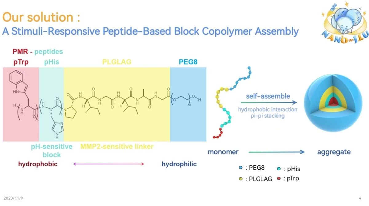 、生命科学学院、公共卫生学院、白求恩第一临床医学院的8名学生组成,自主设计并制备了具有细胞膜撕裂作用的新型纳米球,在靶向肿瘤细胞和pH响应等方面优势明显。