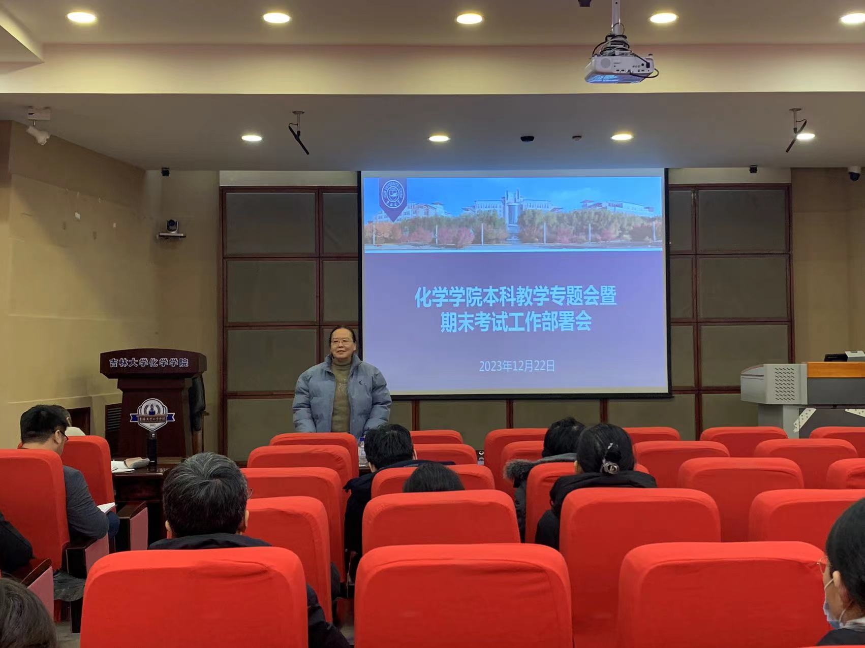 召开了2023-2024学年第一学期本科教学专题会暨期末考试工作部署会,学院各系主任、督学以及任课教师等参加了本次会议,会议由教学副院长郭玉鹏教授主持。