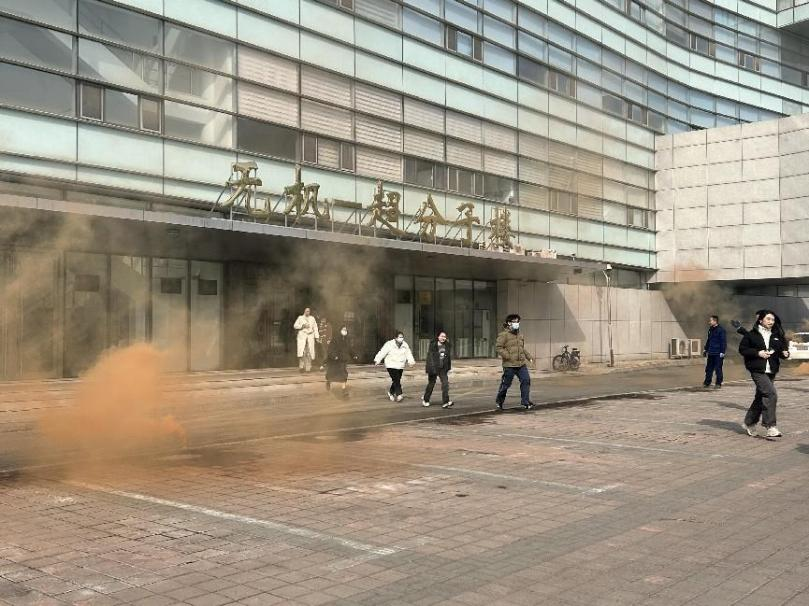 在疏散逃生演练环节,演练指挥小组模拟无机-超分子楼内突发火情场景,全景演练了火情突发后全楼师生紧急疏散撤离、消防队员灭火等流程。演练过程中,楼内师生展现了快速的响应能力,疏散逃生井然有序,演练达到了预期目标。
