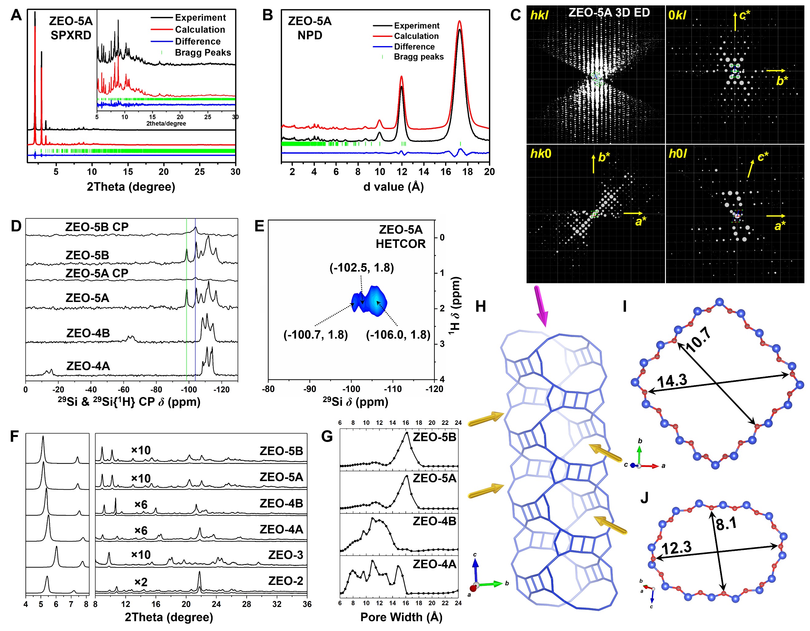 图二:ZEO-4和ZEO-5的基础表征和ZEO-5的孔道系统及孔口尺寸
