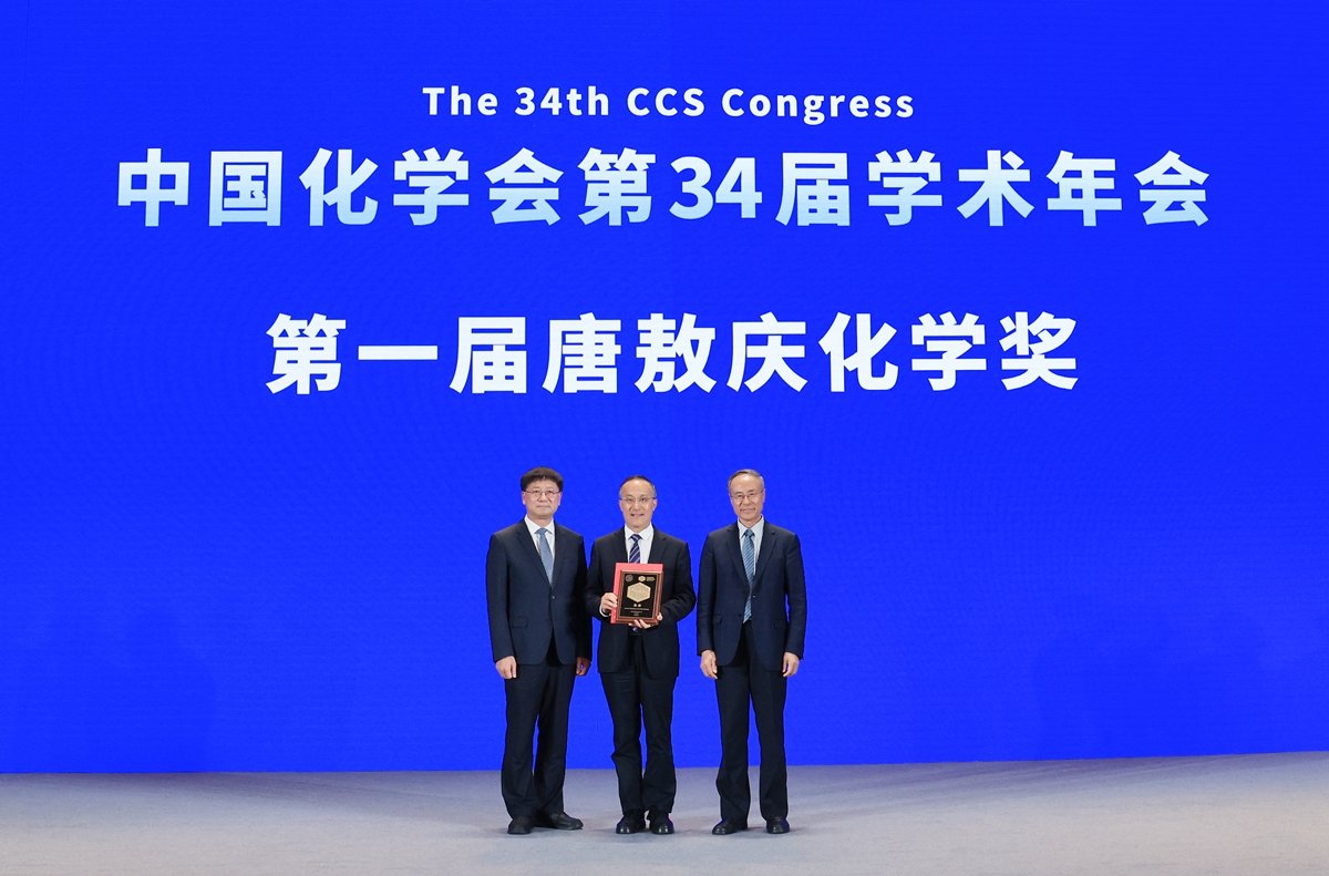 开幕式上,颁发了第一届唐敖庆化学奖。张涛院士因在单原子催化方面的开拓性研究,荣获首届唐敖庆化学奖。张希宣读颁奖辞,并与万立骏共同为获奖者中国科学院院士、大连化学物理研究所张涛研究员颁奖。