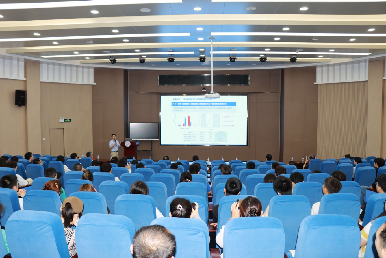 黄险波1997年博士毕业后,来到金发科技从事研发工作。从技术员到现在的首席科学家,黄险波一直扎根在实验室和生产一线奋斗。作为企业技术带头人,黄险波带领团队攻克了一道道技术难关,填补了国内多项技术空白,为改性高分子材料产业化奠定了坚实的基础,相关研究推动中国航空航天等领域的技术发展。报告会上,黄险波介绍了企业的基本情况,高分子材料发展背景与挑战及整体研发思路,并从生物降解膜材料、电子电器材料、节能降耗车用材料、集成电路用关键材料四个方面深入浅出地分享了团队主要成果与贡献,以及企业创新体系与平台建设。“如何扬长补短?如何与生态环境兼容并蓄协同发展?这是高分子材料高质量发展面临的核心挑战。”黄险波指出,在多年的产品开发过程中越来越深刻体会到:高附加值产品的开发越来越依赖基础研究。高分子材料是世界上体积用量最大的基础材料,其诸多优点使之在国民经济和国防建设中发挥着无可替代的重要作用。一方面,高分子科学的发展为工业界提供了更全面、深刻的认知和指导;另一方面,在工程应用中出现的新问题、新挑战,也为高分子科学的发展提供了源源不断的驱动力。