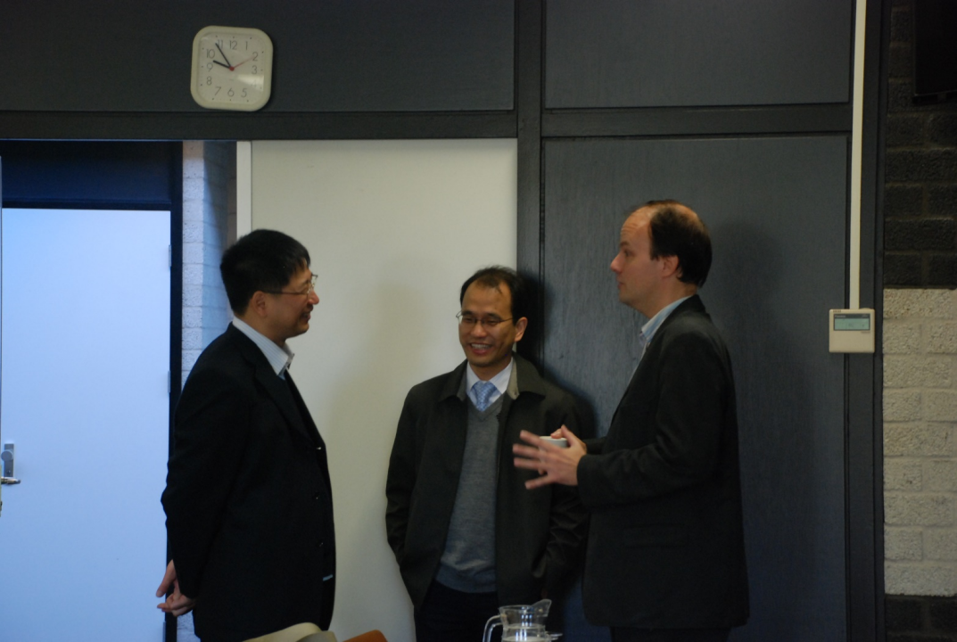 图3 2009年10月,荷兰特温特大学联合组会,博士生指导教师张希教授(左一)和博士后合作导师