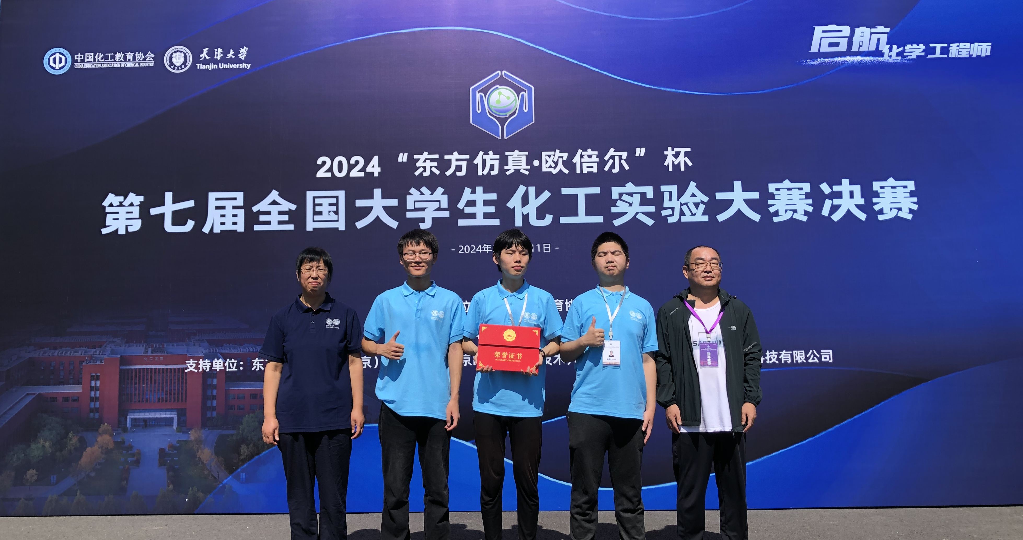 鼎新队经过努力拼搏、密切配合、灵活应对,在理论考试(不定项选择题)、仿真实验(其中包括过程安全测试、相应设备的稳态开停车、实验事故处理等)和抽签实验操作(实验操作倒扣分)比赛环节中表现优良,最终获得本届大赛一等奖(指导教师:林艳红、孟繁雨、张玉敏) 。