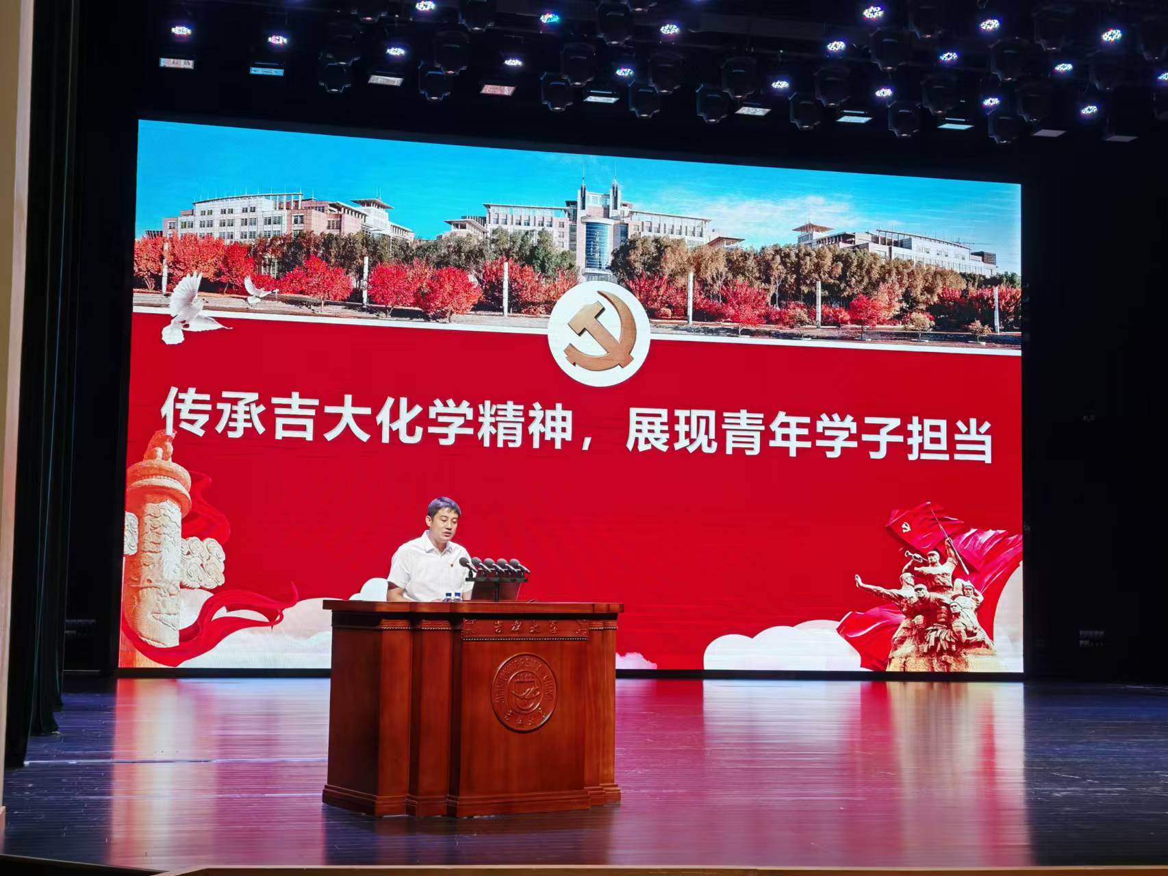 党委书记马本华以“传承吉大化学精神,展现青年学子担当”为主题,在中心校区鼎新大讲堂为2024级研究生新生讲授“第一堂党课”。