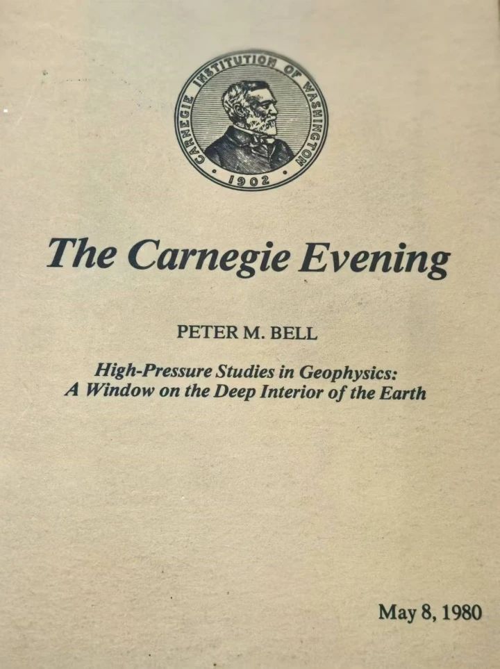 图12 美国卡内基研究院1980年庆生晚会彼得贝尔讲演“地球物理中的高压研究:地球内部的窗口”的小册子中介绍访问学者邹广田