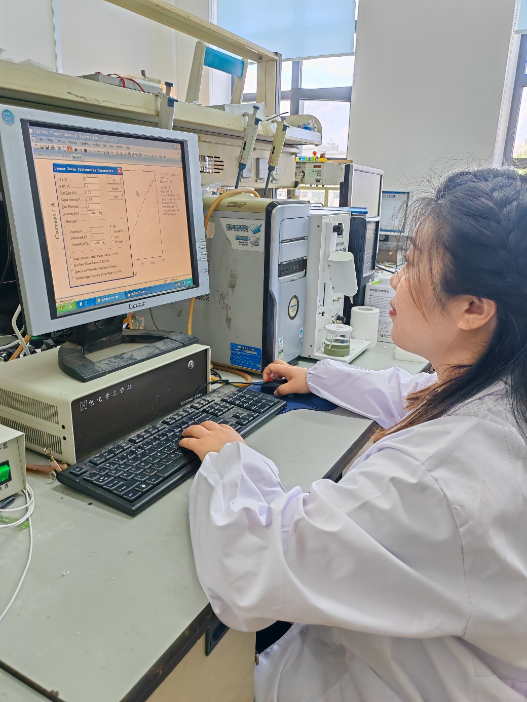 在科研路上,肖丽媛从未放弃探索。经过无数次的实验、试错、再实验,终于在电解水领域取得了突破性的成果,制备出性能卓越的电催化剂,其效能相较于商业催化剂提升了83%。该催化剂能够连续工作长达90小时,这对实际工业化的应用具有重要价值。同时,这一进展在学术领域也得到了广泛认可,硕士期间肖丽媛以第一作者的身份成功发表了多篇SCI论文,涵盖了Chem.Sci., Adv.Funct.Mater.,Nano Energy, Coord.Chem.Rev., Nano Res.,以及Int. J. Hydrogen Energy等权威期刊。其中Chem. Sci.为中科院一区、B类权威期刊,Adv.Funct. Mater等三篇中科院一区,两篇中科院二区。