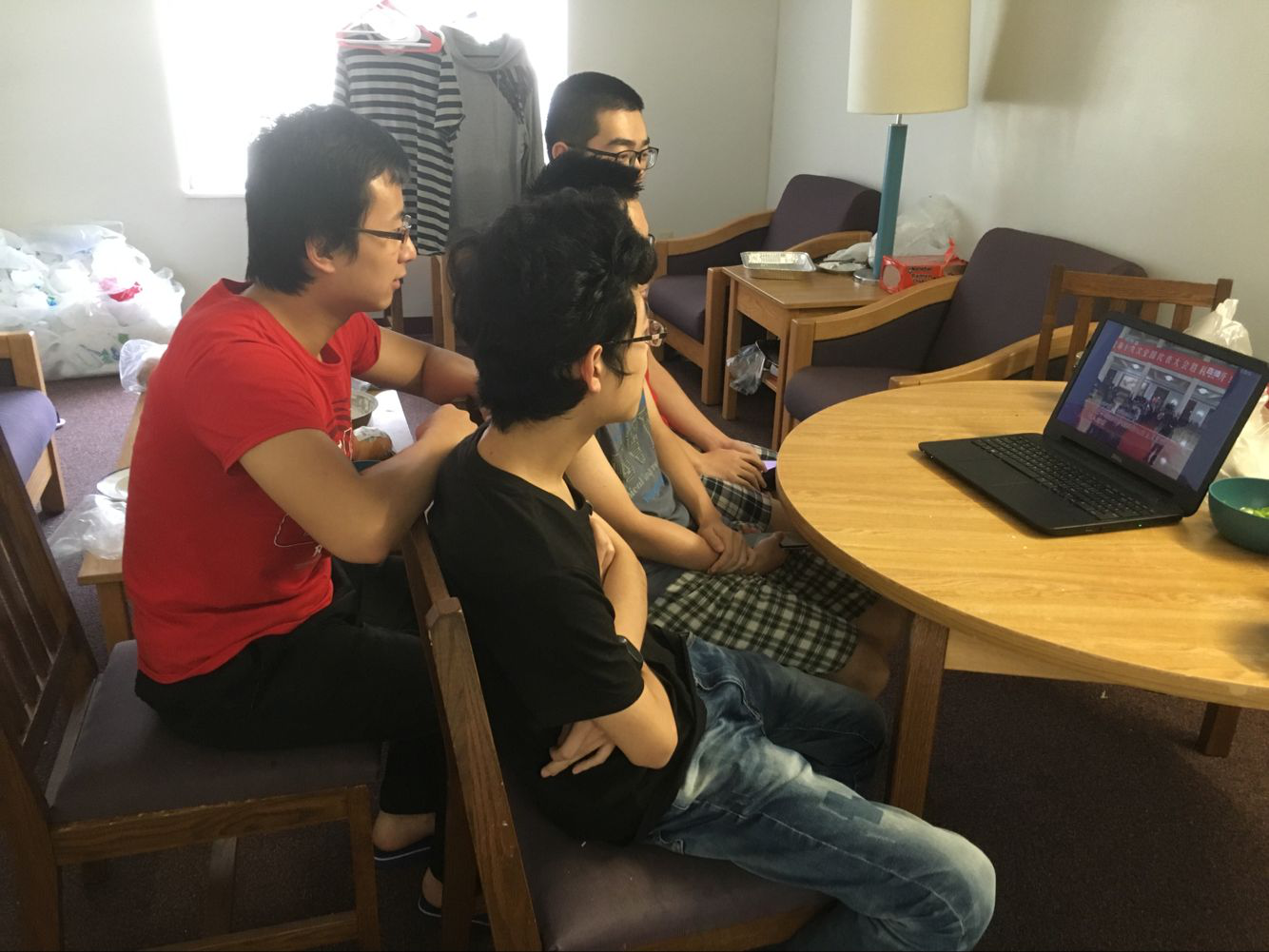 党委第一时间组织2014级唐敖庆班赴美国罗格斯大学交流同学,组成海外留学生“十九大”学习小组,同学们在各自的实验室或租住的公寓内集体收看“十九大”召开盛况,积极学习“十九大”精神。