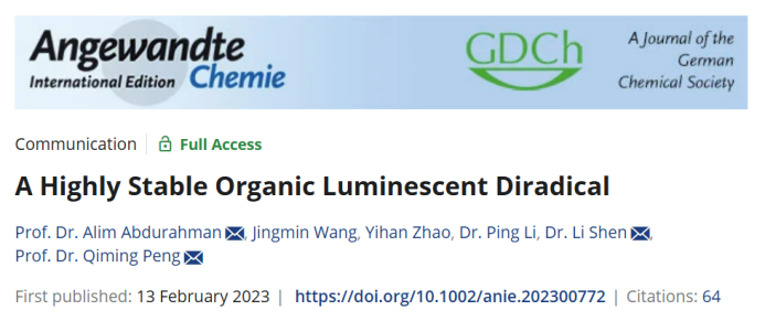 此后,他在错误和失败之中不断学习,不断启发。在实验中首次发现了具有发光性质的凯库勒(Kekulé)双自由基TTM-PhTTM。其成果陆续发表于《Angewandte Chemie》等国际顶级期刊,引起学界广泛关注并被长期追踪,形成新的学术热点。