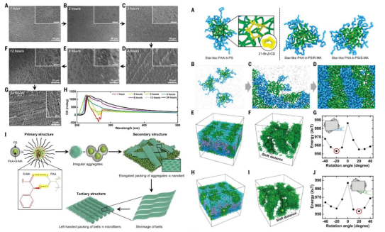 团队通过介观尺度分子模拟揭示了非手性两亲性单分子胶束与手性添加剂的协同组装机制、多级次手性超结构形成动力学过程以及手性反转亚稳态的结构起源。该研究为设计具有超高手性光学活性的智能材料提供了理论指导,对理解超分子手性自组装行为有重要意义。草榴社区