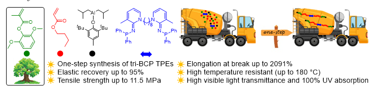图.基于新型Lewis碱的受阻Lewis酸碱对催化一步合成木质素基三嵌段热塑性弹性体