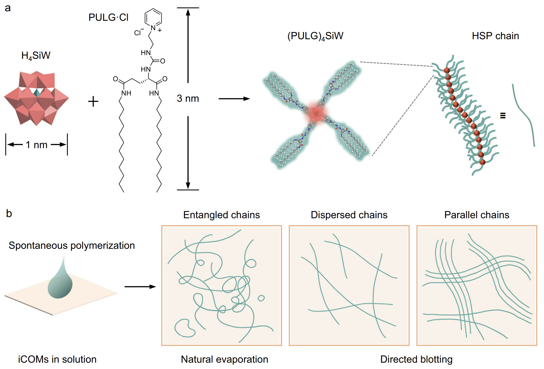图1. 离子复合物(iCOM)单体及其超分子聚合物HSP链的制备