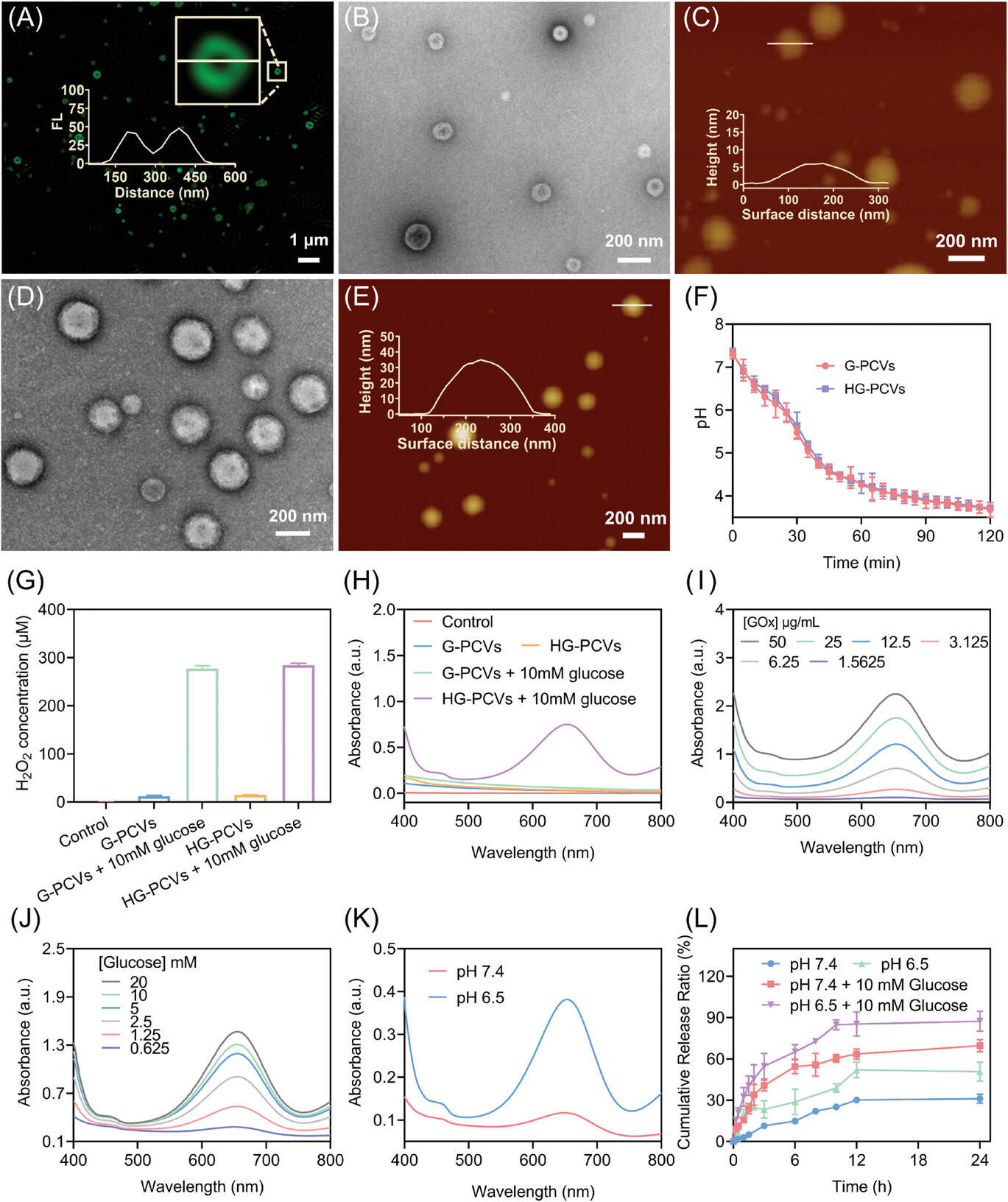 在本工作中,首先通过在PCVs表面修饰乳糖酸,赋予其靶向递送能力,同时负载疏水性抗癌药物索拉非尼(SRF)和功能性蛋白(血红蛋白(Hb)和葡萄糖氧化酶(GOx))。在肿瘤微环境条件下,SRF加速释放,有效降低了PCVs膜的通透性,葡萄糖选择性进入其内部,触发酶级联反应,并产生有毒的羟基自由基,同时进一步降低体系的pH,促进SRF释放。体外实验表明,SRF与GOx/Hb的联合治疗促进细胞内产生大量的活性氧,使谷胱甘肽过氧化物酶4失活,破坏线粒体的功能,导致脂质过氧化物积累,共同诱导细胞的凋亡和铁死亡,促进肿瘤细胞的死亡。小鼠体内实验结果表明,这种联合治疗策略具有高效的抗肿瘤活性,并能引起细胞的免疫原性死亡,有效促进树突状细胞的成熟,提高毒性T细胞和辅助T细胞的比例,进一步抑制远端肿瘤的生长。该方法为肿瘤联合治疗提供了一条新的有效途径,具有良好的应用前景。