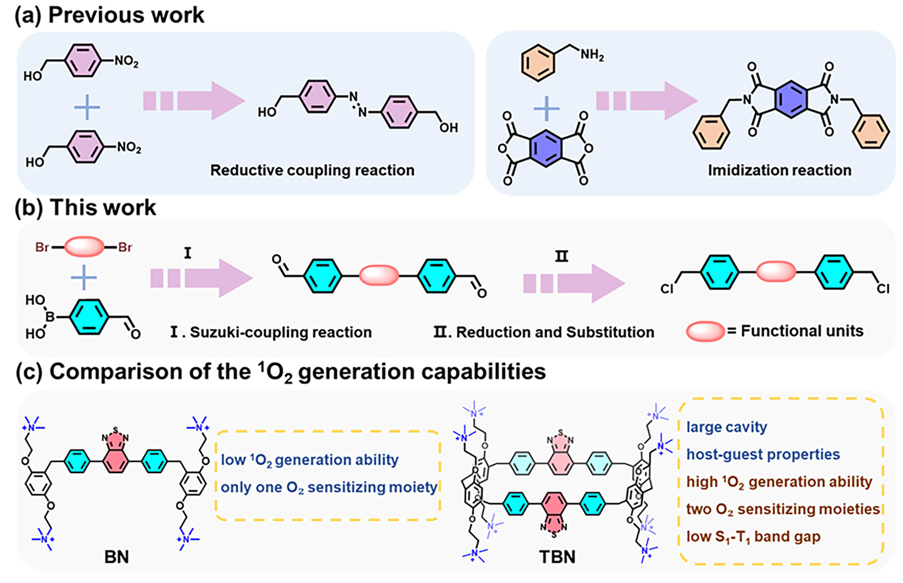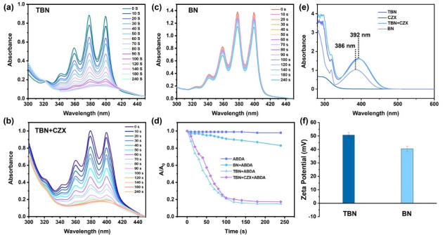 图2.大环TBN和非环前体BN的单线态氧生成能力研究