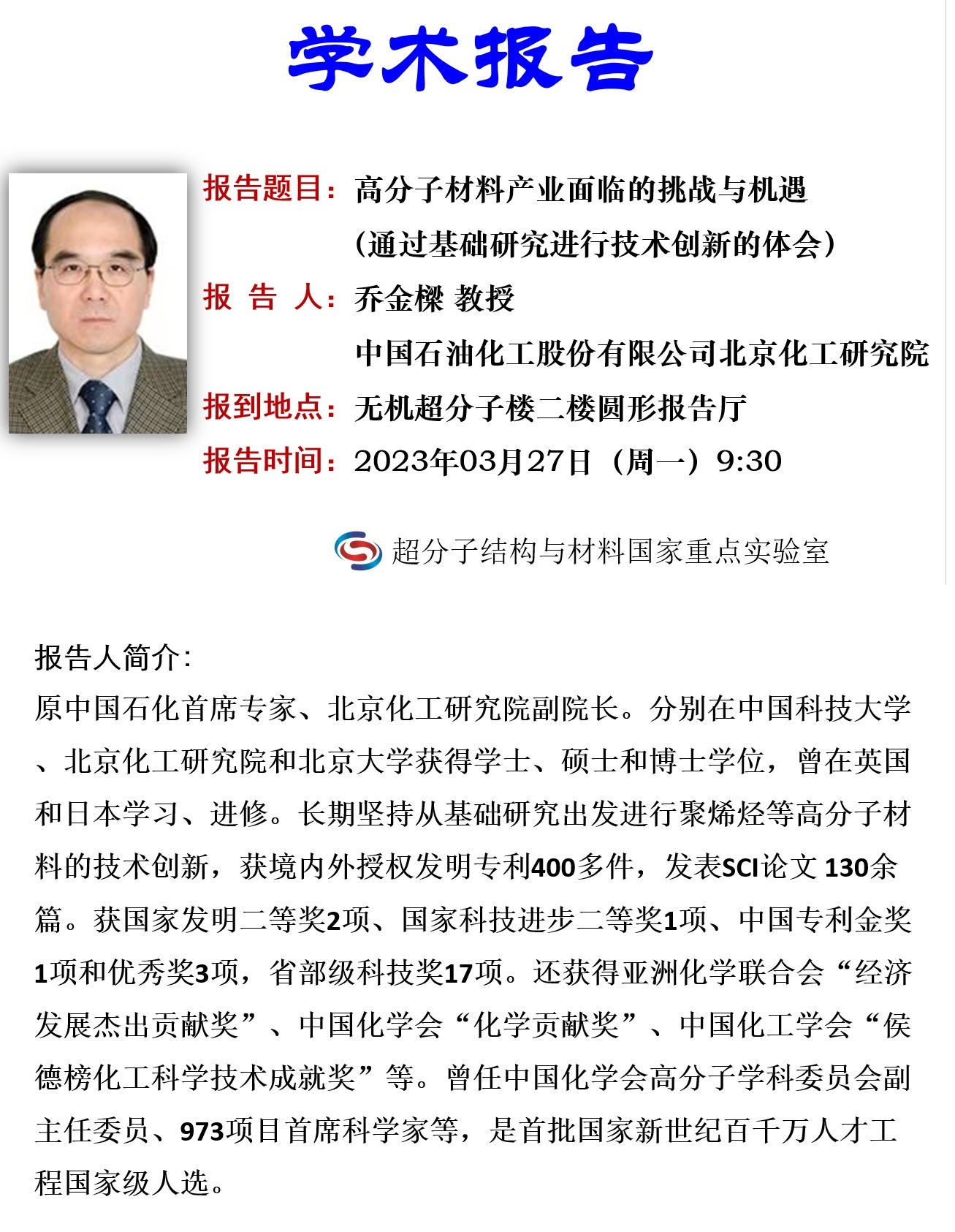 中国石油化工股份有限公司北京化工研究院 教授