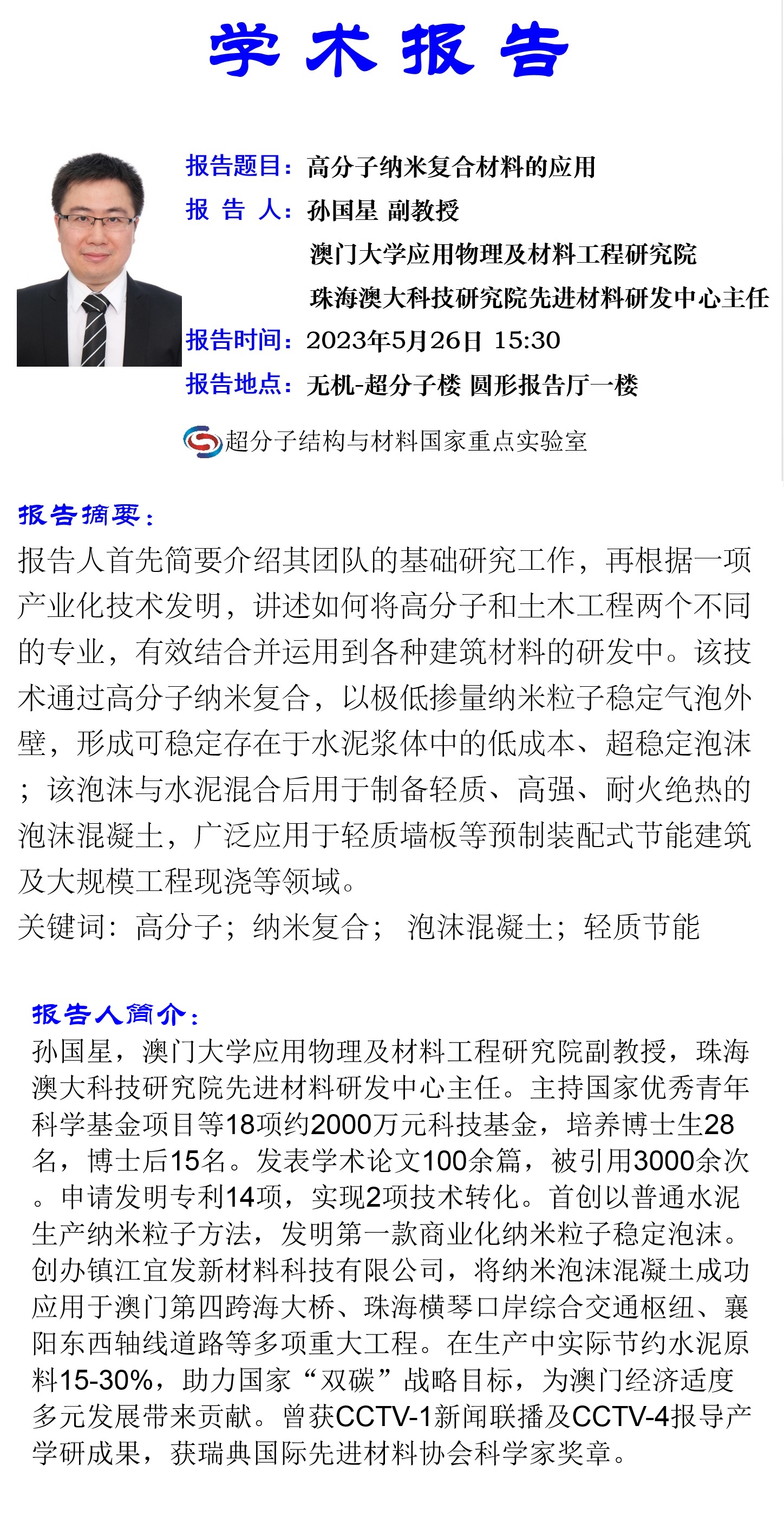 学术报告名称