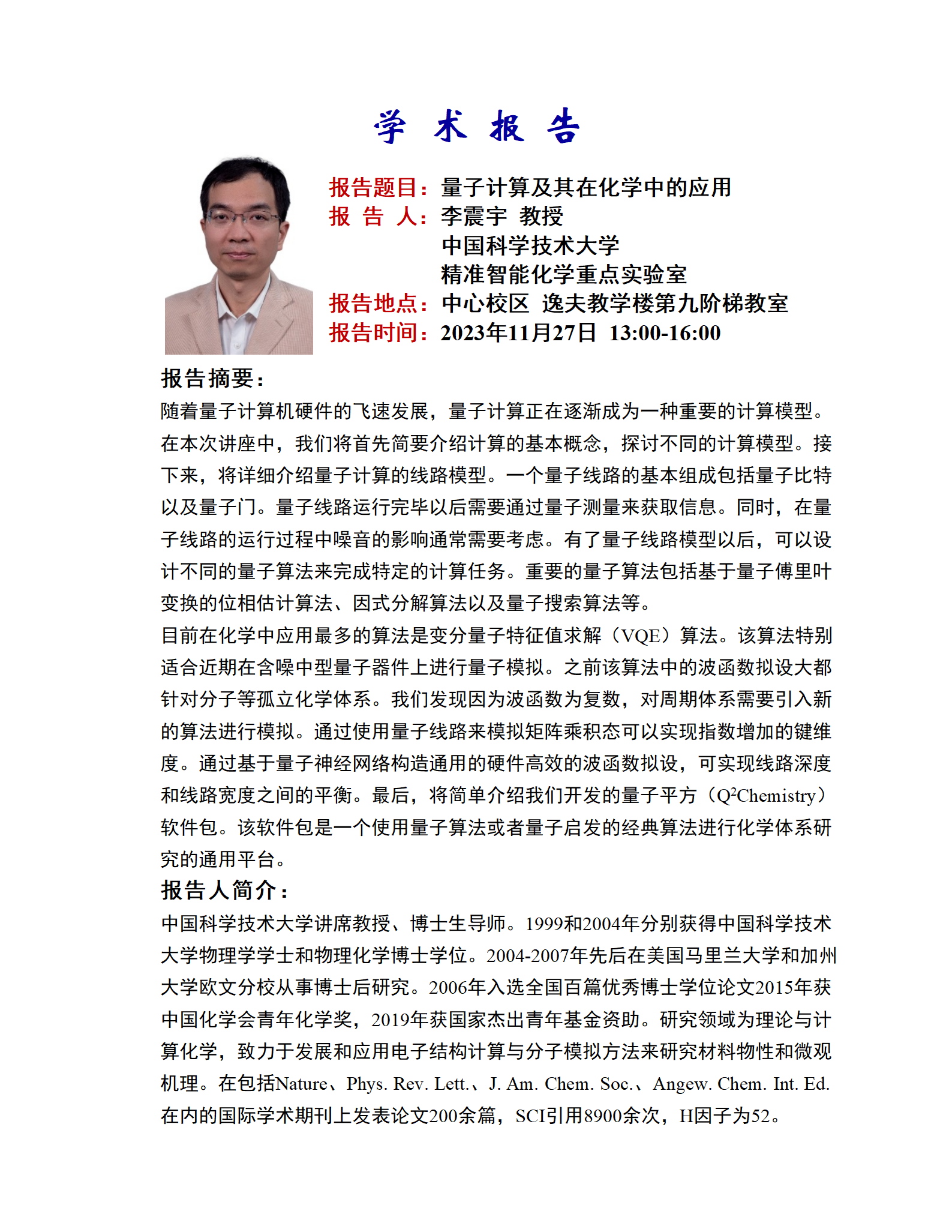 学术报告名称