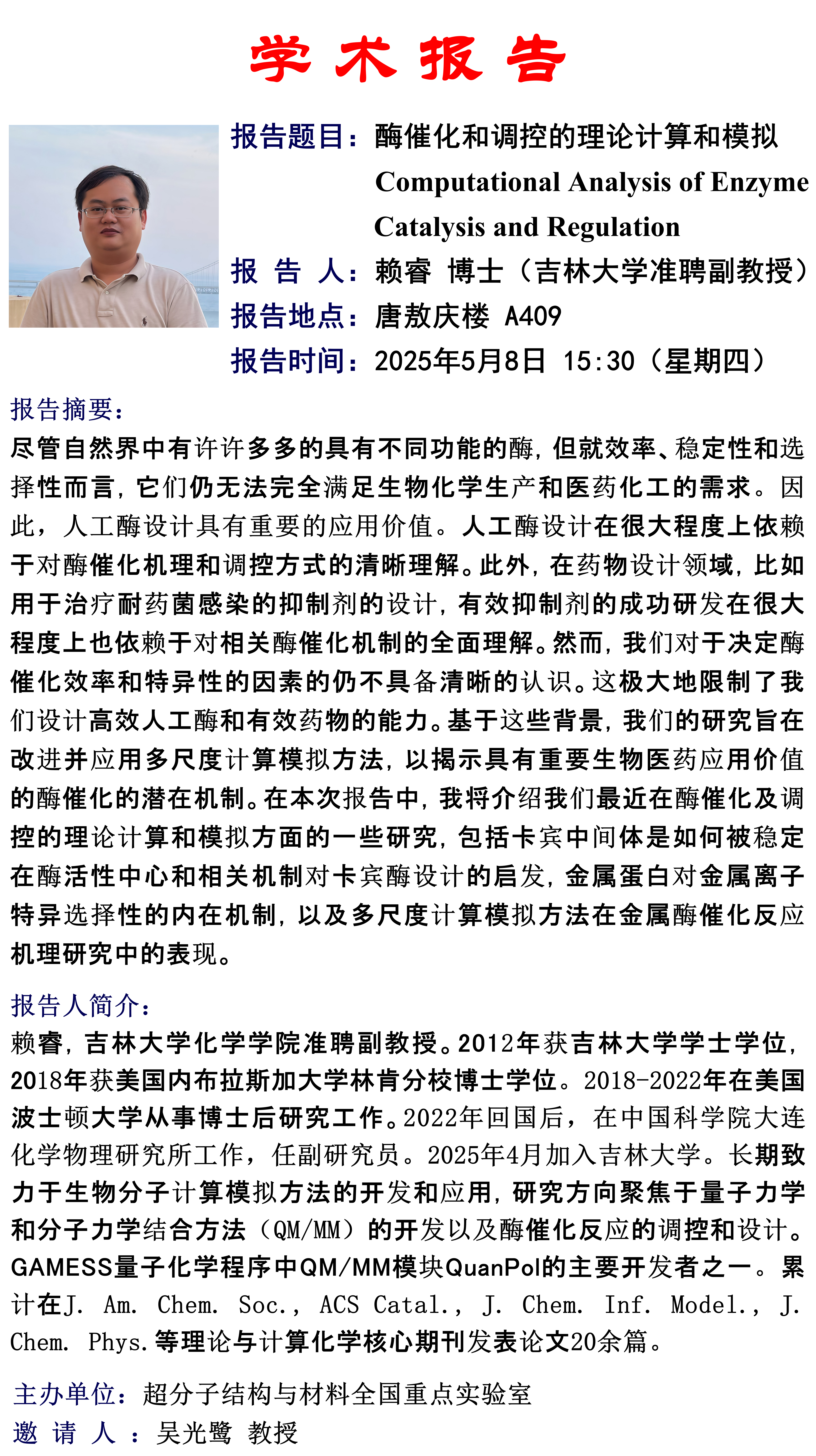 酶催化和调控的理论计算和模拟