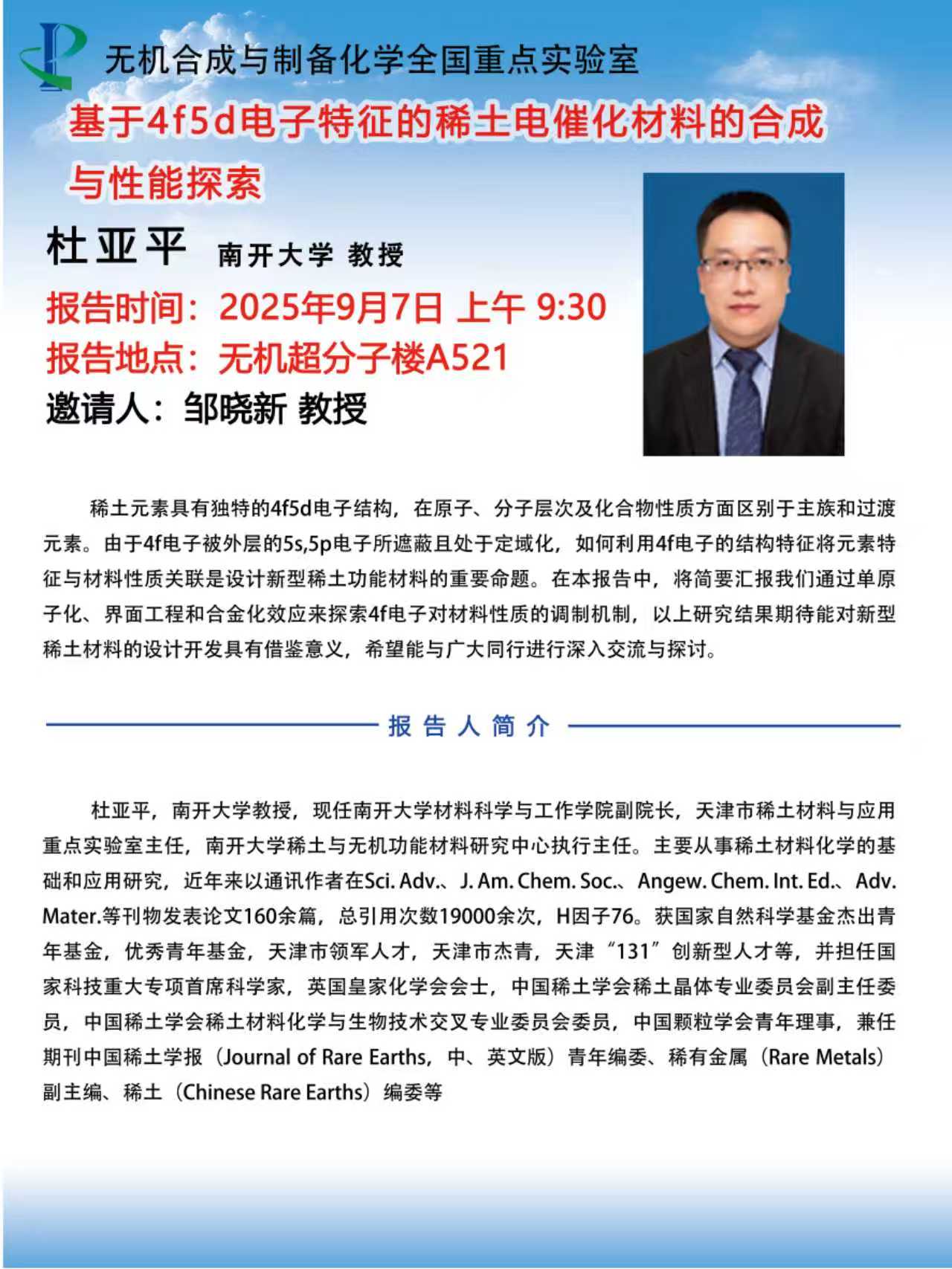 中心校区 无机超分子楼A521室