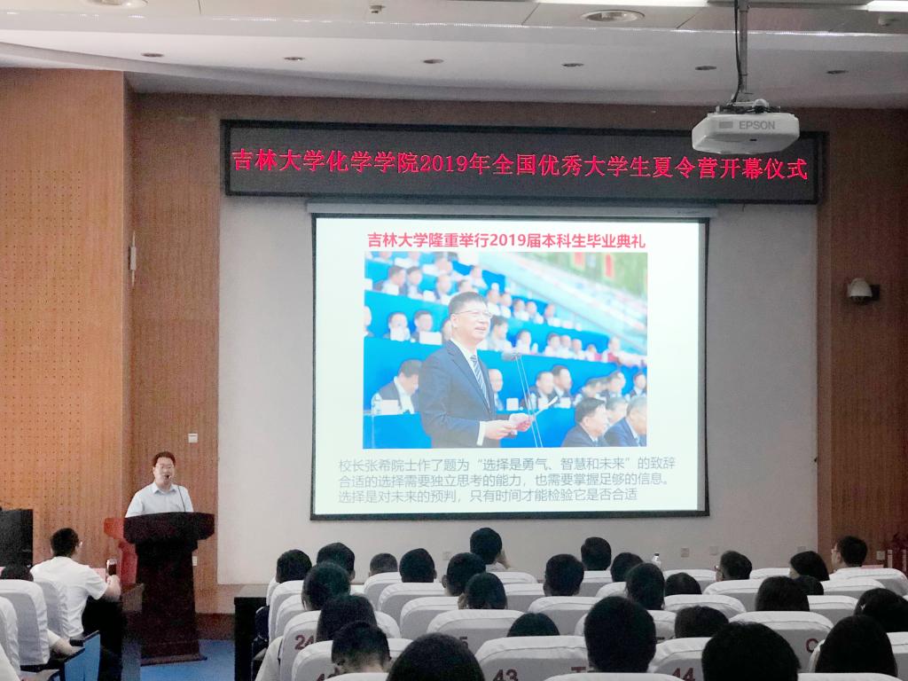 举办夏令营的目的,并从有深厚的文化底蕴、有坚实的教学科研基础、有一支实力雄厚的师资队伍、有成功的人才培养理念、有前瞻的国际化视野等五个方面介绍了吉大化学的特色。