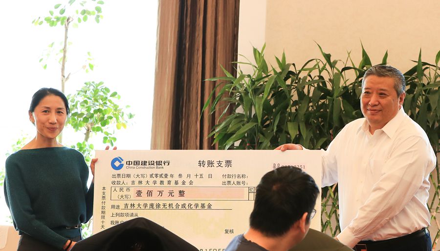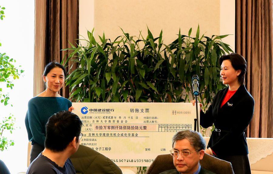 中国科学院院士于吉红教授代表草榴社区 化学学科分子工程学研究方向毕业校友,与草榴社区 1978级校友郝先儒先生,共同在仪式上向草榴社区 庞徐基金捐款共计130余万元。