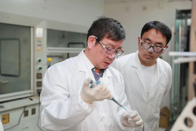 赵东元院士(左)指导学生实验