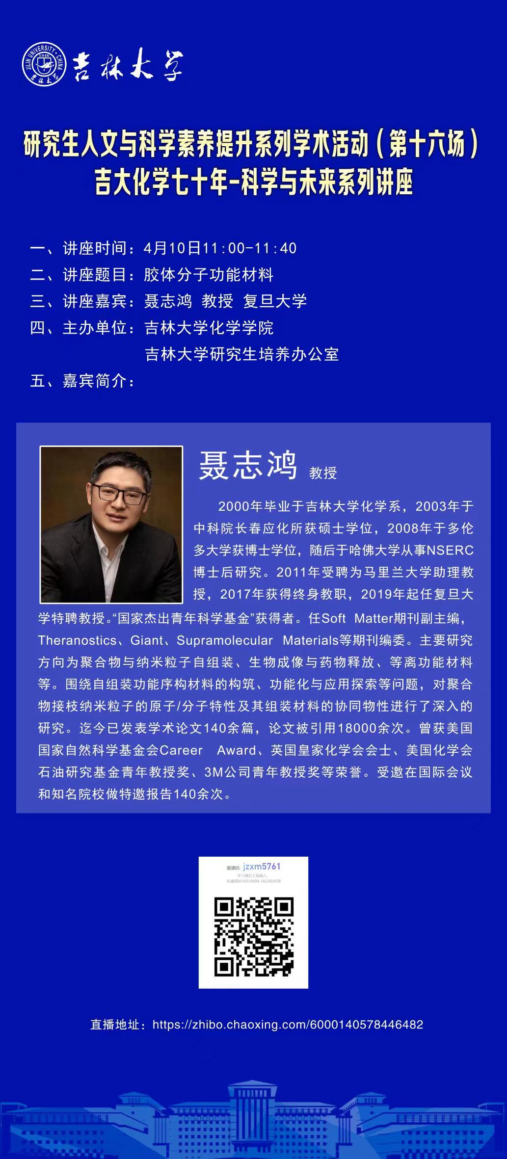 吉大化学70年院庆系列活动——科学与未来系列讲座:胶体分子功能材料